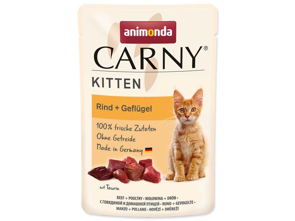 Chutná kapsička pre mačiatka Animonda Carny Kitten. Obsahuje optimálny pomer nutričných hodnôt pre výživu rastúcich mačiatok v prvom roku života.