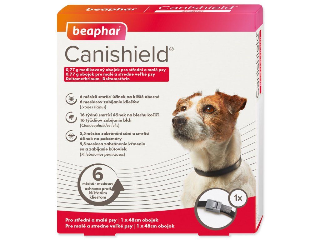 Antiparazitný obojok Beaphar Canishield® pre stredné a malé psy je vysoko účinná zbraň proti parazitom. Má dlhodobé pôsôbenie, a ochráni tak vášho maznáčika: