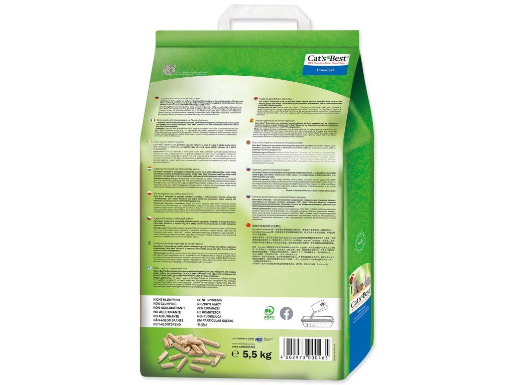 Podstielka Cats Best Universal sú 100% prírodné a biologicky odbúrateľné malé oválne peletky, ktoré udržia toaletu či klietku suchú a bez zápachu. Nielen že výborne viažu tekutiny, ale tiež zbavujú nežiadúcej vlhkosti a sú teda vhodné aj ako doplnková podstielka napr. k miskám či napájačkám pre vtáčiky. Peletky majú prirodzenú vlastnosť viazať nepríjemný zápach a to aj bez pridania akýchkoľvek chemických látok.