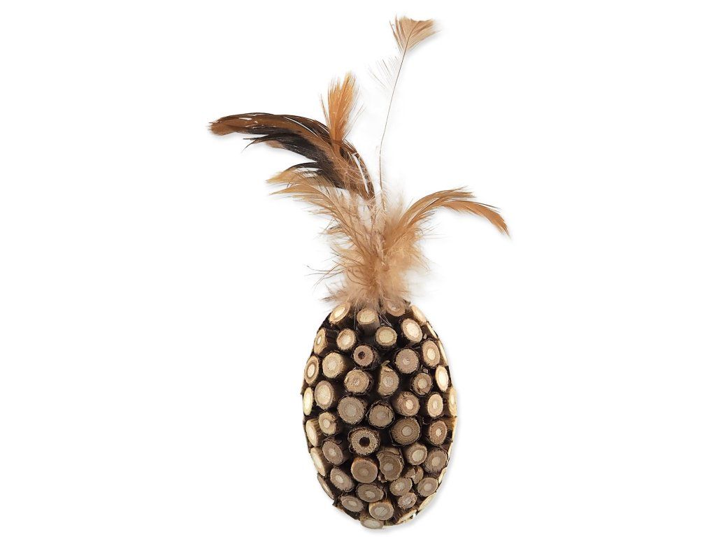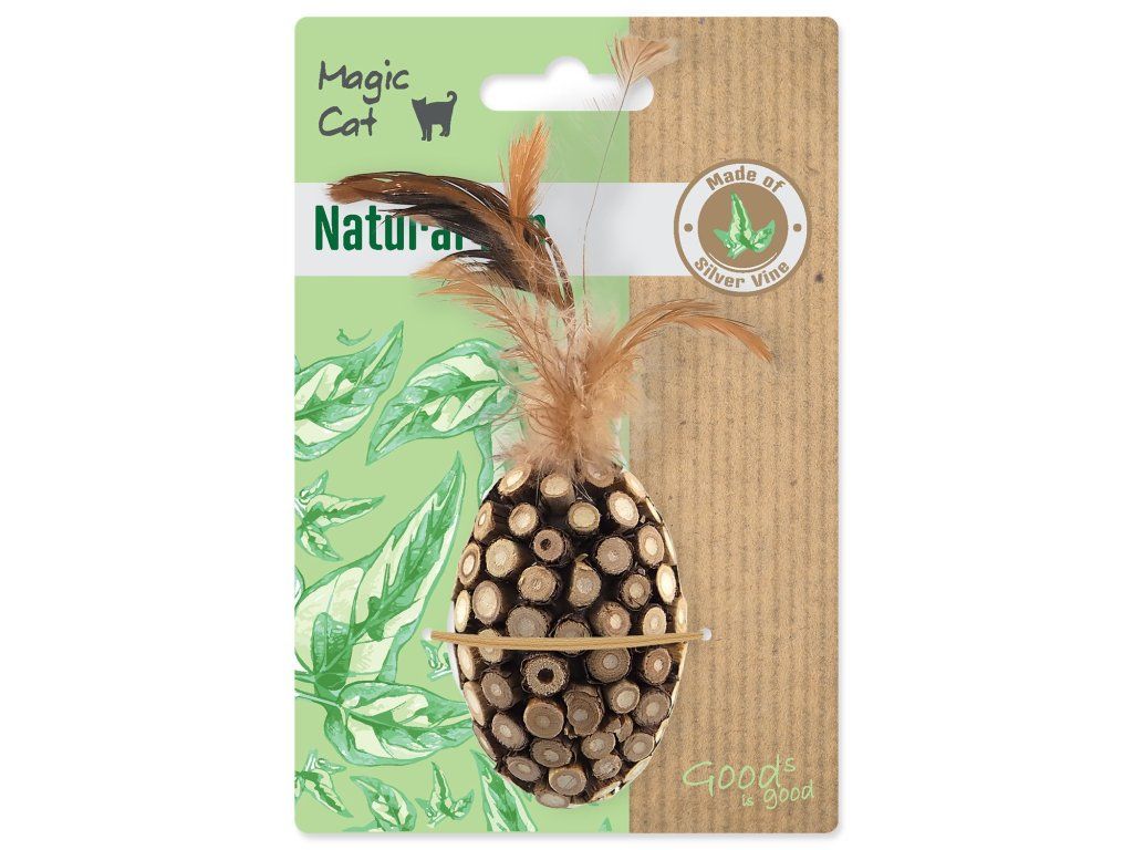 Hračka Magic Cat Natural Fun ovál s prírodnými pierkami a oblepené drevom 14cm