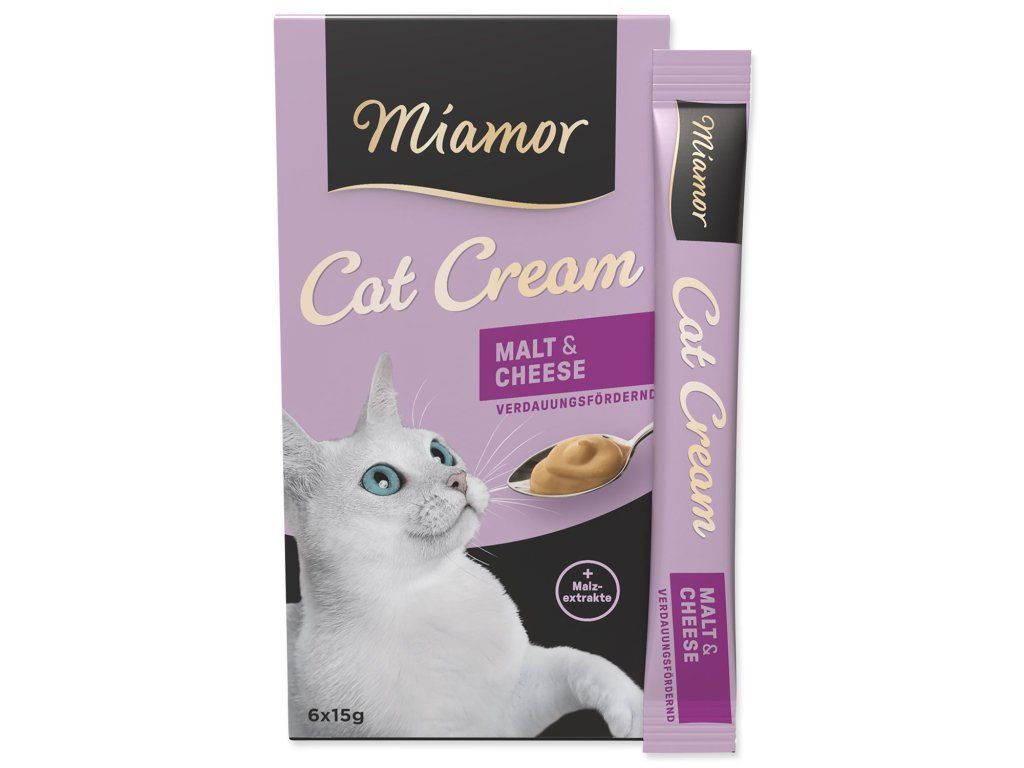 Špeciálny krém s extraktmi zo sladu a krémovým syrom pre odstránenie nahromadených chlpov - 6 x 15 g. Doplnkové krmivo pre dospelé mačky.
