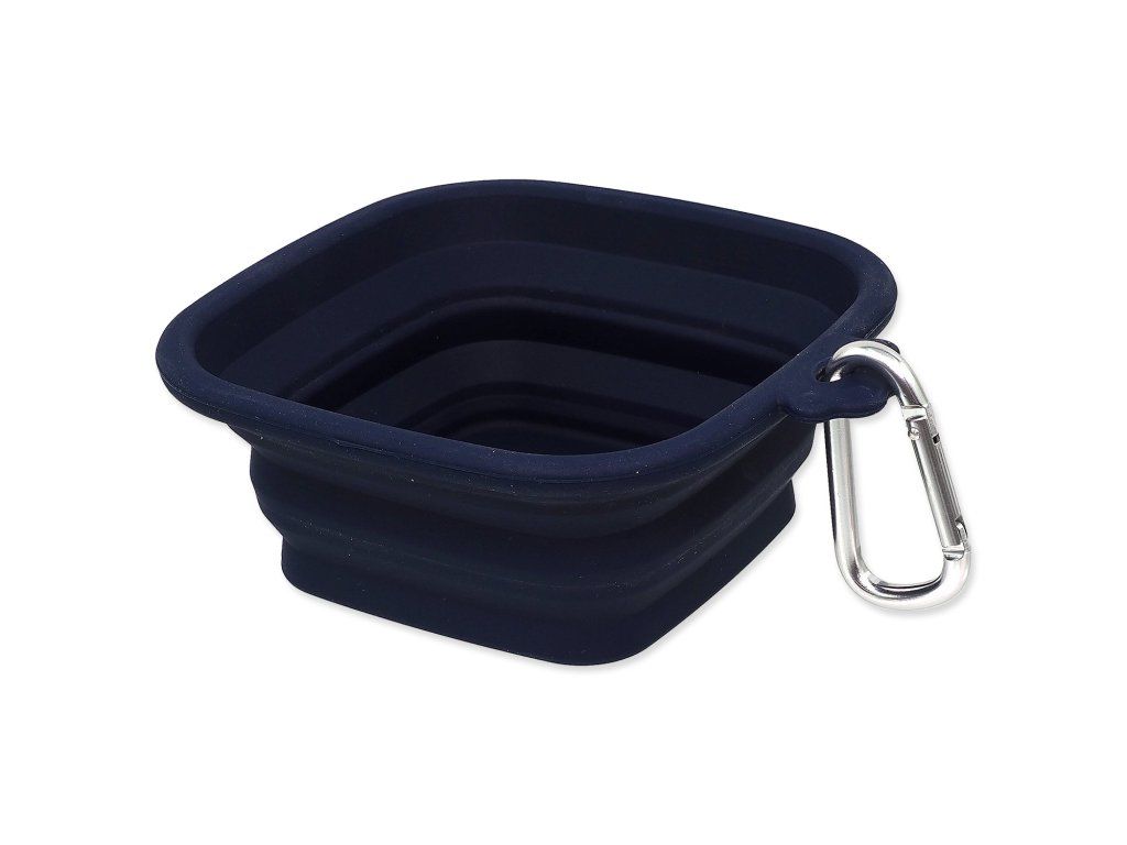 Cestovná skladacia silikónová miska. Skladacia, vhodná na cesty i pri dlhých prechádzkach Silikónová Neprepúšťa pachy Ľahká údržba Odolná proti nárazom a mrazu Veľkosť: 13,5 x 13,5 x 4 cm
