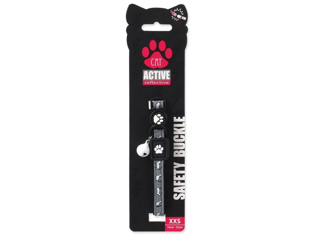 Reflexný obojok pre mačky Active Cat veľkosť XXS, čierny, 1x16-22 cm. Bezpečnostný mechanizmus s reflexnými prvkami.