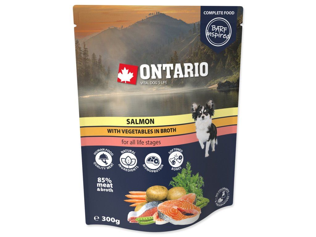 Predstavte si poctivú domácu stravu, ktorú môžete vziať kamkoľvek so sebou. Kapsička Ontario losos so zeleninou vo vývare 300 g je inšpirovaná BARF prístupom – po otvorení vás privíta vôňa vývaru a viditeľné kúsky. Žiadna anonymná hmota, ale skutočné jedlo.