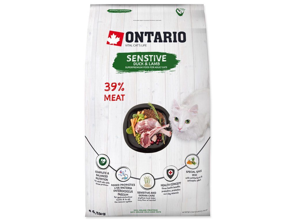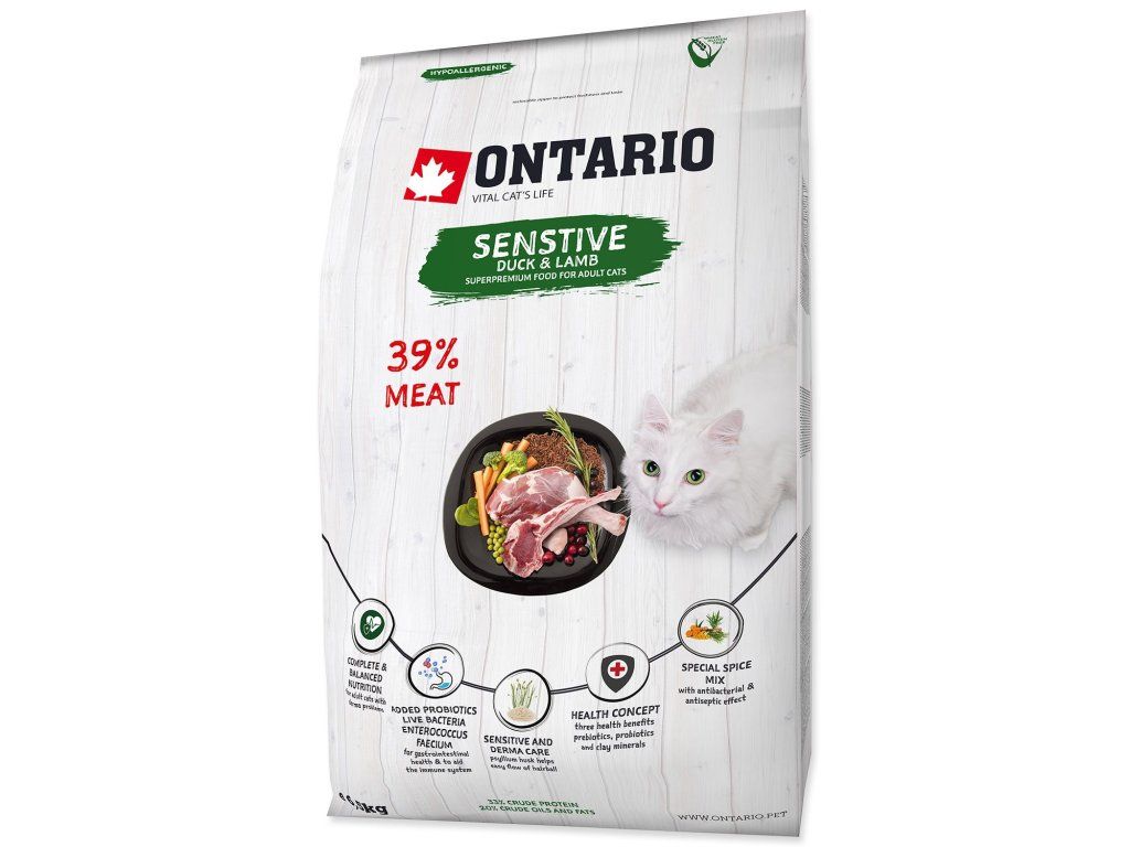 Trápia vášho parťáka časté tráviace ťažkosti, hnačky alebo sa neustále škriabe? Citlivosť na krmivo dokáže znepríjemniť život mačke aj vám. Ontario Sensitive prináša úľavu vďaka hypoalergénnej receptúre. Kombinácia kačacieho a jahňacieho mäsa je mimoriadne šetrná k žalúdku, zatiaľ čo unikátne probiotiká v každej granulke pomáhajú nastoliť rovnováhu tam, kde to najviac potrebuje – v črevách.