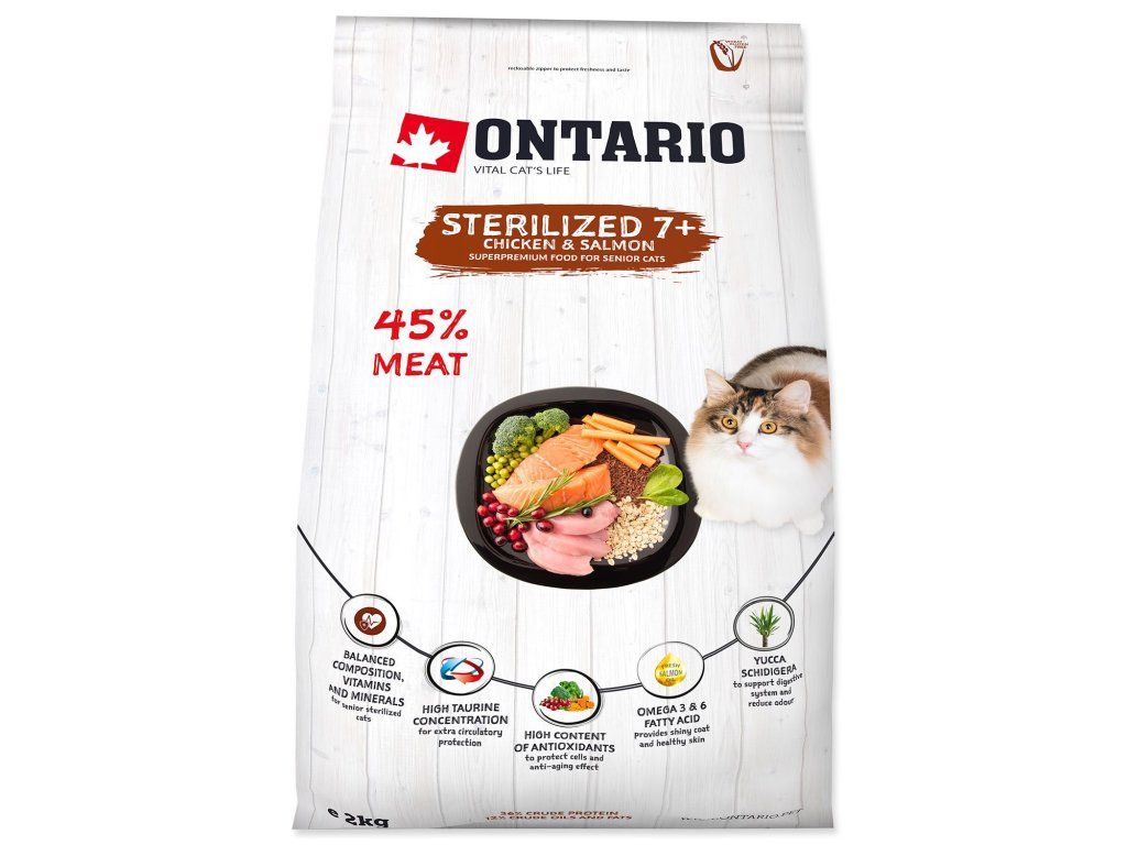 Krmivo Ontario Cat Sterilised 7+ Senior 2kg