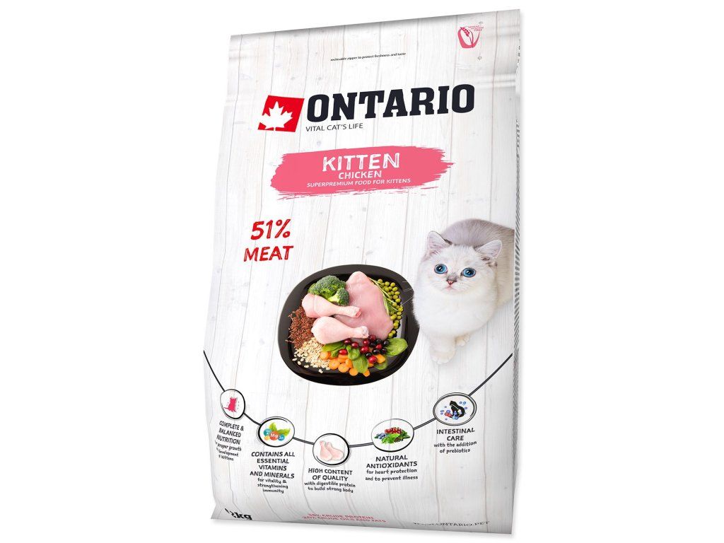 | Čo trápi majiteľov? Lacnejšie krmivá pre mačiatka mávajú nízky podiel živočíšnych bielkovín a chýbajú im látky pre zdravý vývoj mozgu. Často obsahujú umelé konzervačné látky alebo farbivá, ktoré nie sú pre citlivý organizmus rastúceho zvieratka vôbec vhodné a môžu mu v budúcnosti spôsobiť zdravotné ťažkosti. | Naše riešenie: Receptúra Ontario Kitten stavia na vysokom podiele kuracieho a morčacieho mäsa s celkovými 38 % proteínov pre zdravý rast svalov. Vďaka prídavku lososového oleja podporujeme rozvoj zraku a pamäti vášho malého objaviteľa. Všetko je postavené na kombinácii ryže a ovsa, aby bolo trávenie v úplnom poriadku a váš parťák mal dostatok energie na každodenné hry. |
