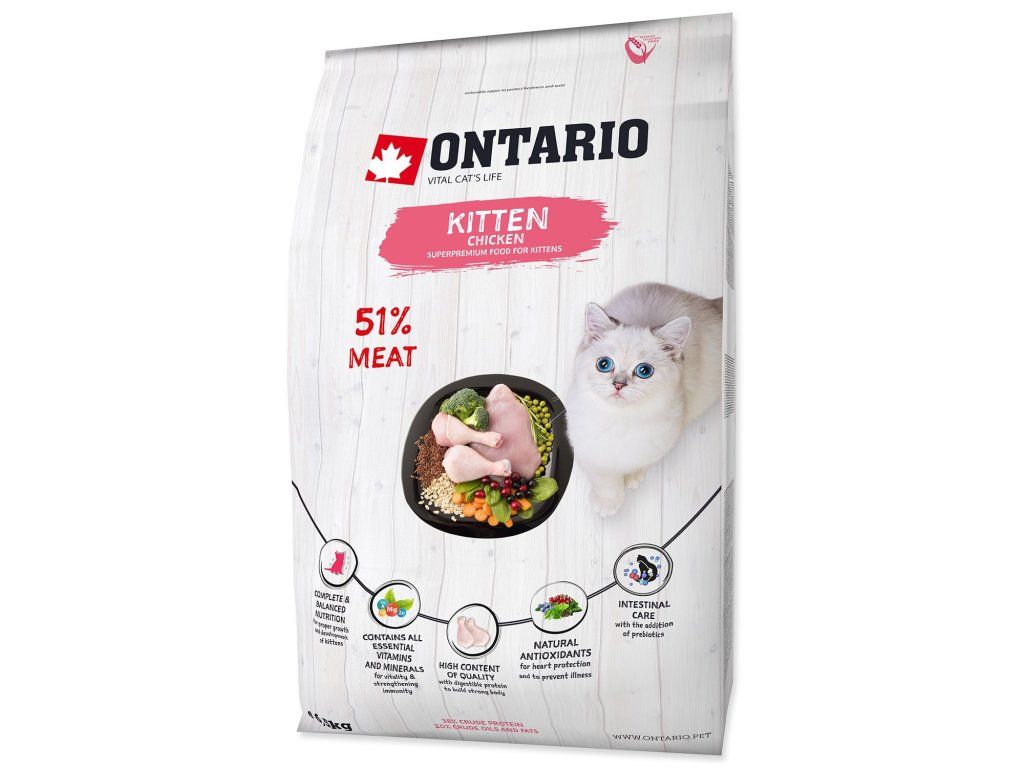 | Čo trápi majiteľov? Lacnejšie krmivá pre mačiatka mávajú nízky podiel živočíšnych bielkovín a chýbajú im látky pre zdravý vývoj mozgu. Často obsahujú umelé konzervačné látky alebo farbivá, ktoré nie sú pre citlivý organizmus rastúceho zvieratka vôbec vhodné a môžu mu v budúcnosti spôsobiť zdravotné ťažkosti. | Naše riešenie: Receptúra Ontario Kitten stavia na vysokom podiele kuracieho a morčacieho mäsa s celkovými 38 % proteínov pre zdravý rast svalov. Vďaka prídavku lososového oleja podporujeme rozvoj zraku a pamäti vášho malého objaviteľa. Všetko je postavené na kombinácii ryže a ovsa, aby bolo trávenie v úplnom poriadku a váš parťák mal dostatok energie na každodenné hry. |