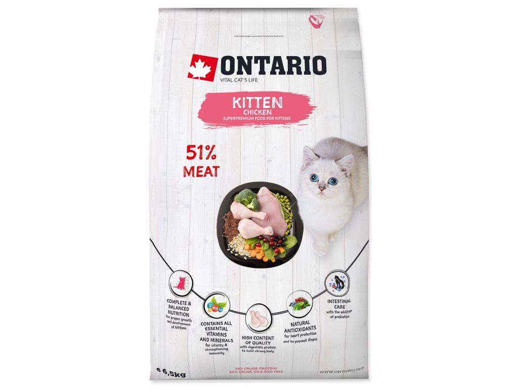 Krmivo Ontario Kitten Chicken 6,5kg