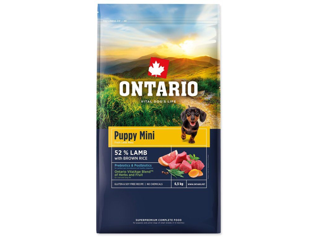 Krmivo Ontario Puppy Mini Lamb & Brown Rice 6,5kg