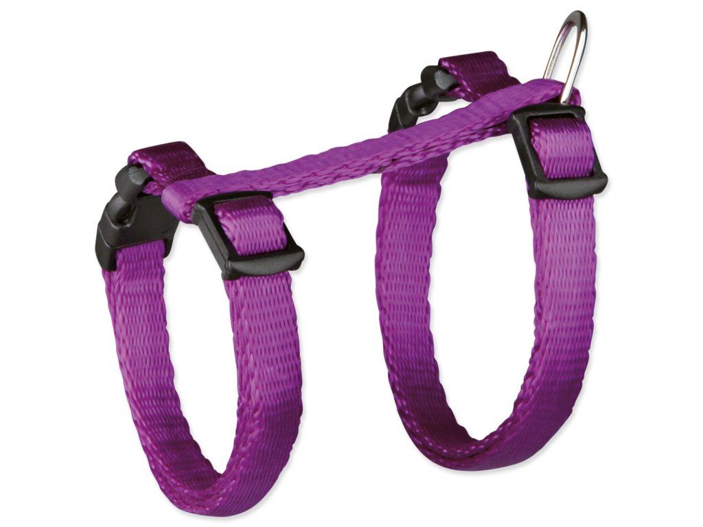 Postroj s vodidlom pre mačiatka a malé mačky milujúce prechádzky. Je vyrobený z nylonu. Zvyšuje bezpečnosť a predchádza úrazom. Zapínanie pomocou plastovej spony. Kovový krúžok pre pripnutie vodidla.