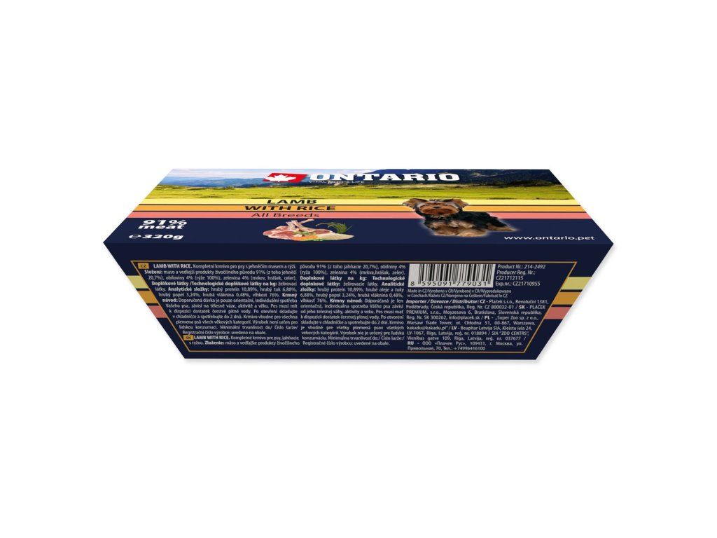 Doprajte svojmu psovi komfortné stolovanie kdekoľvek. Vanička Ontario jahňacie s ryžou 320 g je kompletné krmivo s vysokým podielom mäsa, servírované v praktickej vaničke, ktorá slúži rovno ako miska.